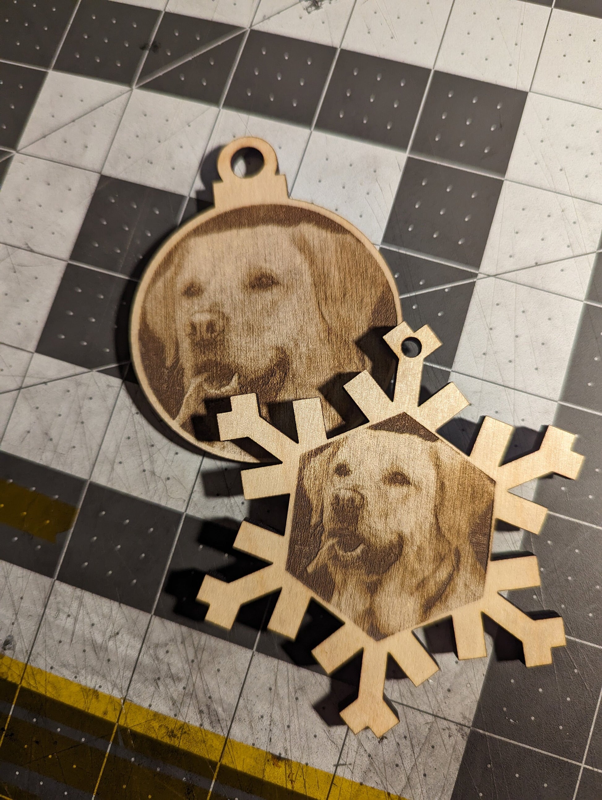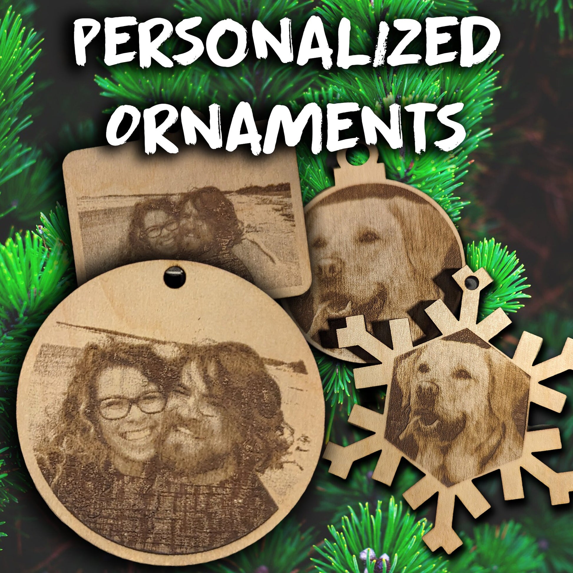 - Made in Maine these are made from birch wood and are fully customized just for you! Once ordered send us a message with the photo you would like one your ornament! If you choose to add text to your ornament we choose a font that bests fits it with the collection we have and put it at the lower center of the ornament. If you would like the text in a specific place let us know when you send us a message with your photo!